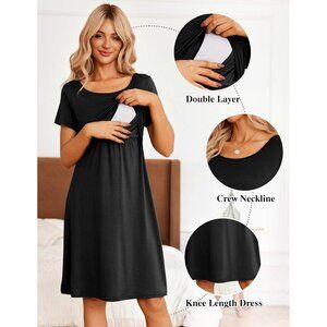 Women's Nursing & Maternity Dress – Short Sleeve, Patchwork, Knee Length Black S