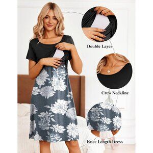 Women's Nursing & Maternity Dress – Short Sleeve, Patchwork, Knee Length Small