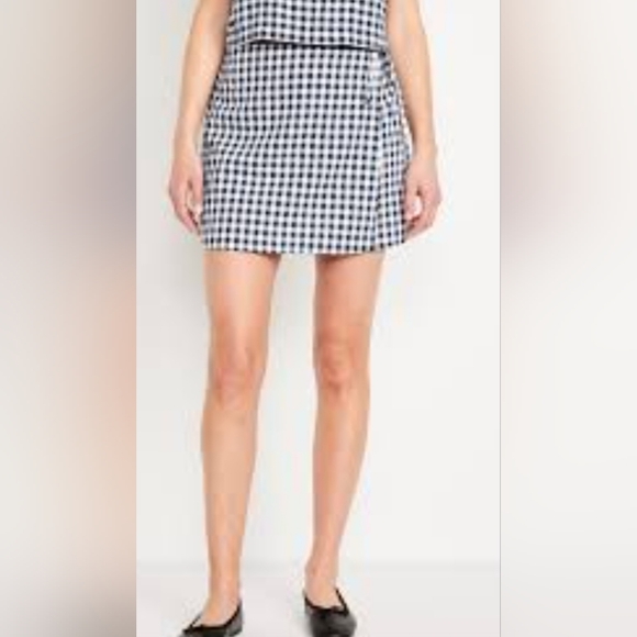 Womens Nwt Old Navy Linen Blend Gingham Wrap Tie Front Skort Shorts