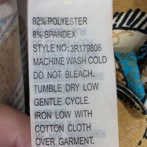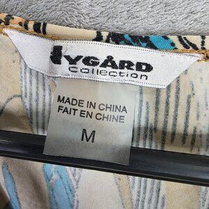 Womens Nygard Beige & Teal Abstract Blouse Short Sleeve V Neck Polyester Size M