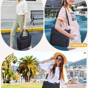 Women's Nylon Puffer Tote Bag with Elastic Cup Slot for Travel and Work