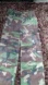 Stylish camouflage cargo pants with a rugged design and frayed edges.