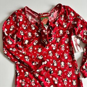 Women’s OHSOHS Red Penguin Christmas Print Pajama Onzie, Size Large