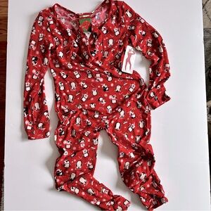 Cozy red pajama set with playful penguin print with matching headband. Perfect for lounging.