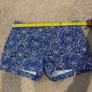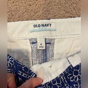 Women's OLD NAVY everyday Twill Chino Shorts blue/ white floral print, size 6 made in Vietnam, cotton blend/ polyester material, 4 pockets design, zip-up button closure. Never worn. Tag has been removed.
