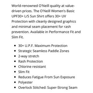 Womens O’Neill Long Sleeve UPF 30+ Sun Shirt Rash Guard Black Size Large