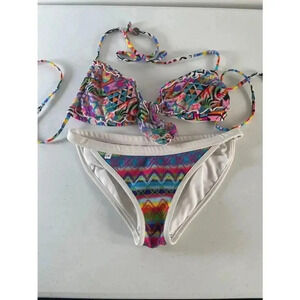 Women's OP Multicolor String Bikini Swimsuit Boho Beach Size S 0308