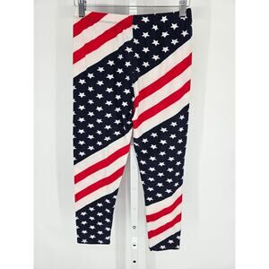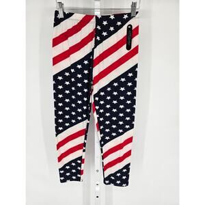 Womens OS One Size Pull On Leggings American Flag USA Patriotic Red White Blue
