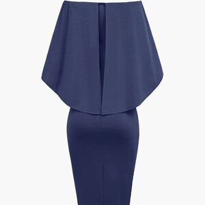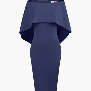 Women's Off Shoulder Batwing Cape Slim Midi Dress, Navy, Small