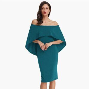 GRACE KARIN Women's Off Shoulder Batwing Cape Slim Midi Dress