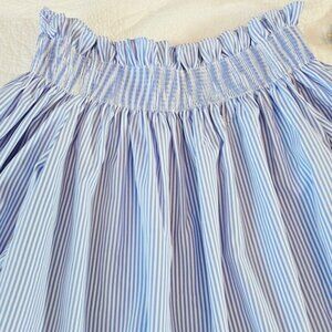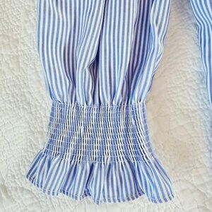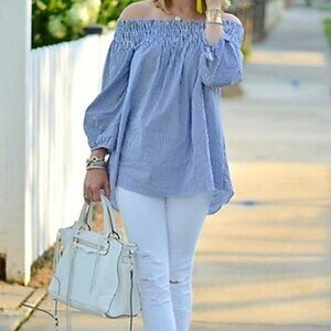 Women’s Off Shoulder Blue Striped Blouse Boho Peasant Size Small Smocked Bardot