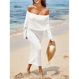 Womens Off Shoulder Maxi Dress White