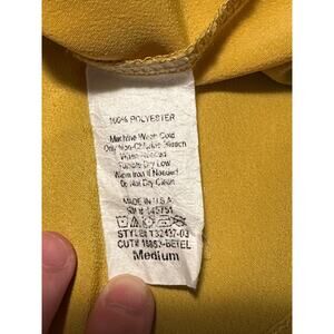 The blouse comes in a size medium, with a solid pattern in a beautiful shade of yellow. It is a regular fit top, perfect for any woman's wardrobe. Whether you're dressing up for a special occasion or just want to add a pop of color to your everyday look, this blouse is sure to impress.