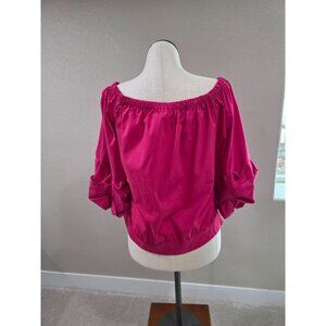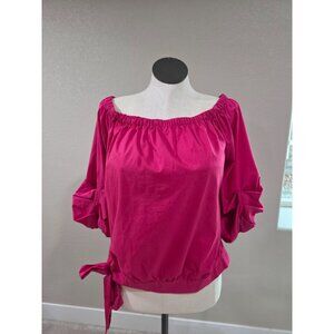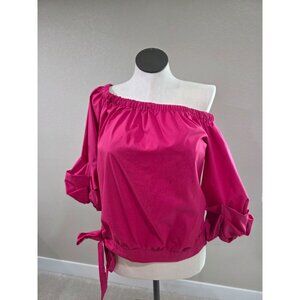 Women's Off-Shoulder Fuchsia Top With Ruched Sleeves & Side Tie New York and Com