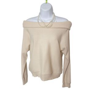 Stay cozy and stylish with this versatile off-shoulder knit sweater in a classic beige tone. Perfect for layering or wearing on its own, this piece features a flattering fold-over neckline and relaxed fit for effortless elegance.