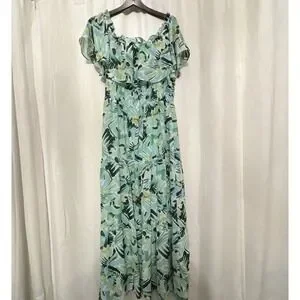 Women's Off-Shoulder Rabbit Rabbit Rabbit Floral Ruffle Flowy Maxi Dress Sz 16