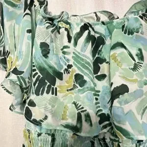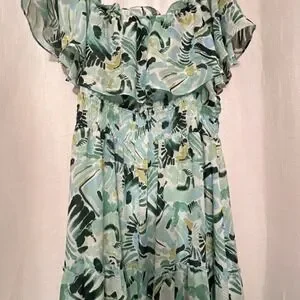 Women's Off-Shoulder Rabbit Rabbit Rabbit Floral design dress with an on or off the shoulder Ruffle top. It's Flowy, a Maxi Dress in size 16.