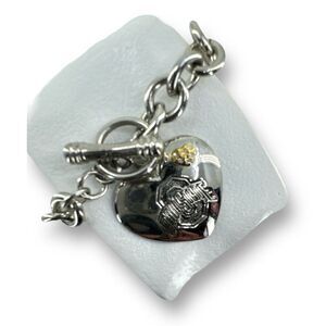 Womens Ohio State Buckeyes Heart Charm Bracelet College Football Silver Plated Toggle Clasps
