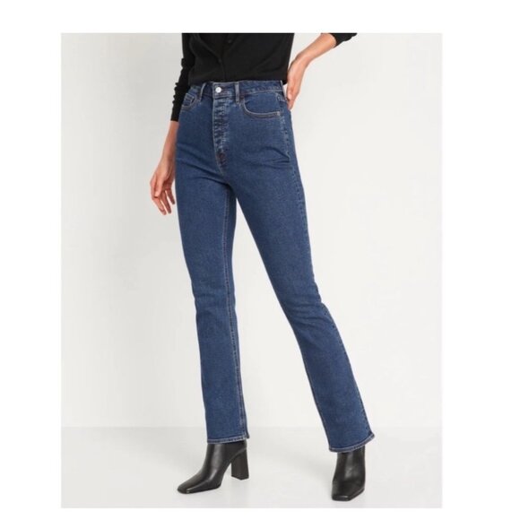 Womens Old Navy Extra High Rise Kicker Boot Dark Wash Tall Long Jeans Size 14