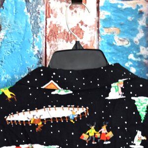 Women's Old Navy Flannel Pajama Shirt Christmas I Love Snow XLARGE Black NEW