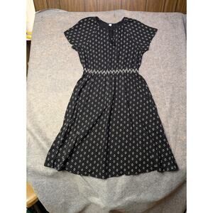 Women's Old Navy Geometric Black and White Dress Size XL Midi Tie Neckline
