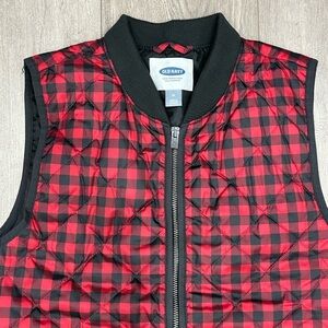 Women's Old Navy Medium 8 - 10 Vest Quilted Jacket Coat Red Black Buffalo NWOT