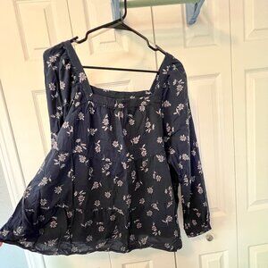 Women's Old Navy Navy Blue Floral Print Tiered Blouse