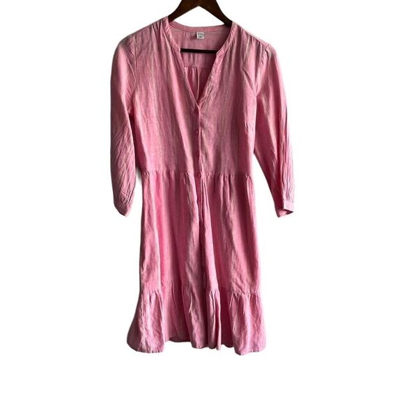 Women's Old Navy Pink Striped Tiered 3/4 Sleeve Button Front Dress
