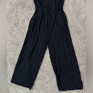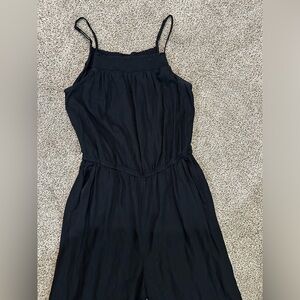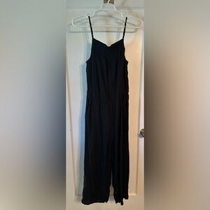 Women’s old navy black spaghetti straps pant jumpsuit/romper. In good condition, only worn a few times. Size Large tall. 55% linen 45% rayon.