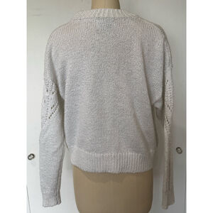 Women's Old Navy pointelle trim knit Sweater Size M crew neck Pearl White color
