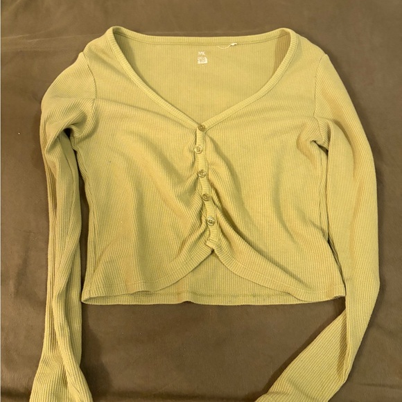 Women's Olive Button-Up Ribbed Top
