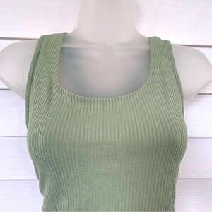 Women’s Olive Green NWT Half Ribbed Crop Tank Top size XL