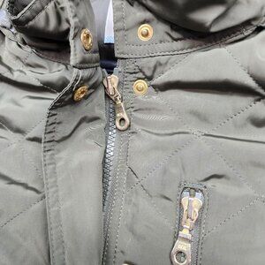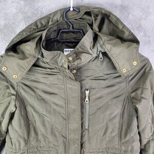Womens Olive Green Old Navy Quilted Jacket Removable Hood Full Zip Size M