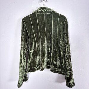 Womens Olive Green Velvet Blazer Jacket Size Large Button-Front Lightweight