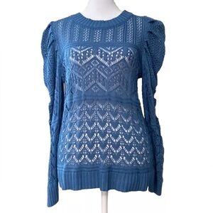 Women’s Oliver.O Crochet Sweater Pullover Long sleeve Puff Shoulder Sz XL