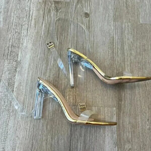 Womens Olivia Ferguson Clear Strappy Block Heels - 8.5