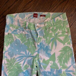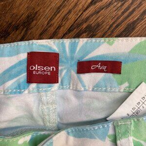 Women's Olsen Europe Floral Print Jeans Size 8 White Green Blue