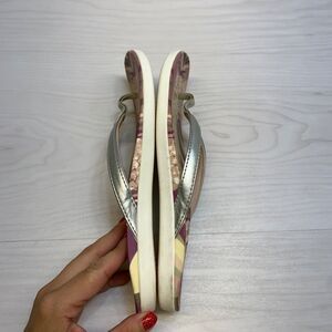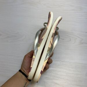 Women's OluKai Ho'Opio Hau Silver / Pineapple Thong Flip Flop Sandals Size 6