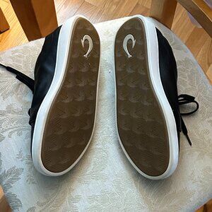 Super comfortable and barely worn women's OluKai leather loafers, black with white trim.