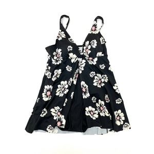 Women's One Piece Swimsuit Black /White Pink Accent Size 12 NWT