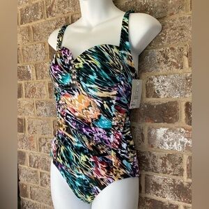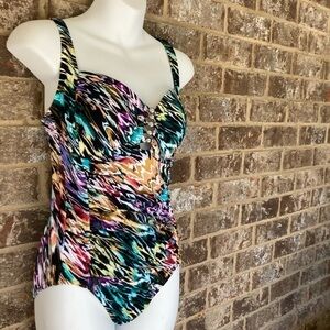 Women's One Piece Swimsuit Croft & Barrow cutout rouched tummy control size 10