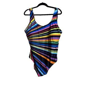 Womens One Piece Swimsuit Multicolor Stripe Size 4XL Padded Beach NWOT