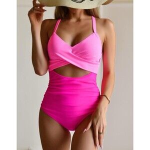 Criss cross one piece bathing suit: Cutout design on front and back, adds a little fashionable to this classic swimsuit. The back tie knot and adjustable shoulder straps fit your body curves perfectly.