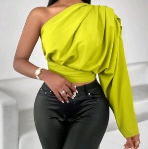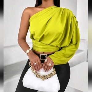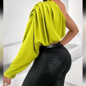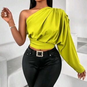 Women's One Shoulder Pleated Long Sleeve Blouse,Long Sleeve Tops