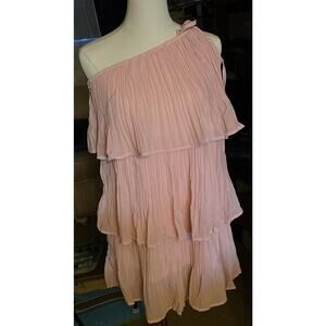 Women's One Shoulder Tie Strap Lightweight Layered Short Dress Pink Medium NWT