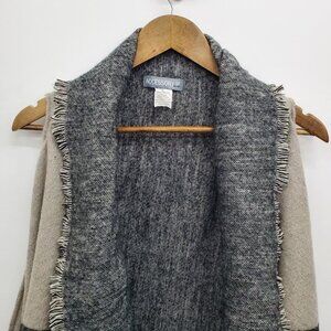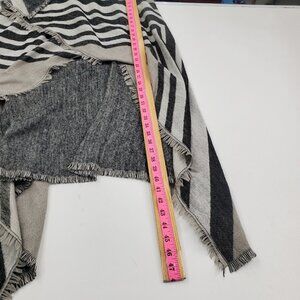 Womens One Size Cardigan Vest Waterfall Open Front Striped Fringe Hem Gray Black