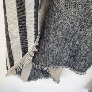 • Gray and black striped woven knit with contrast color block design