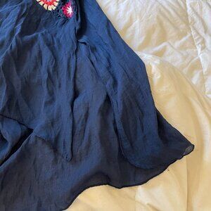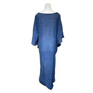 Womens One Size Crochet Knit Swim Cover-Up Dress Blue Boho Beach Peasant Unlined