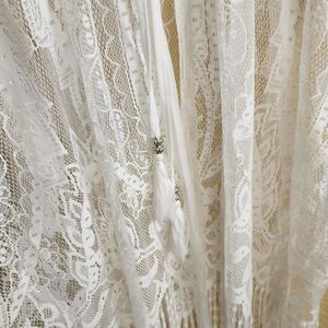 Women’s One Size Lace Swimsuit CoverUp Kimono White New Sheer Mesh Fringed Midi