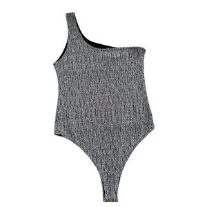 Women's One-Shoulder Rib-Knit Bodysuit Swimsuit Gray M